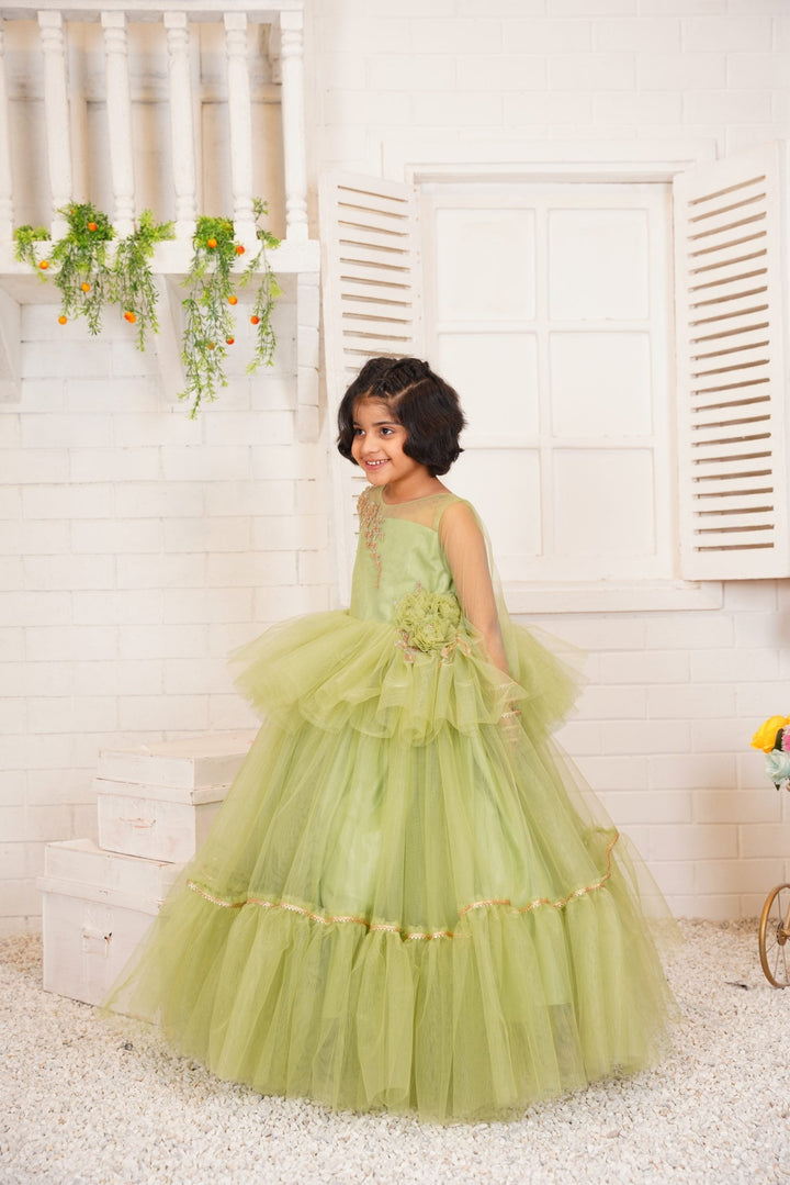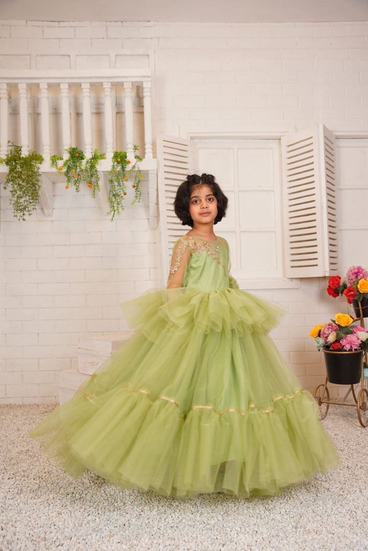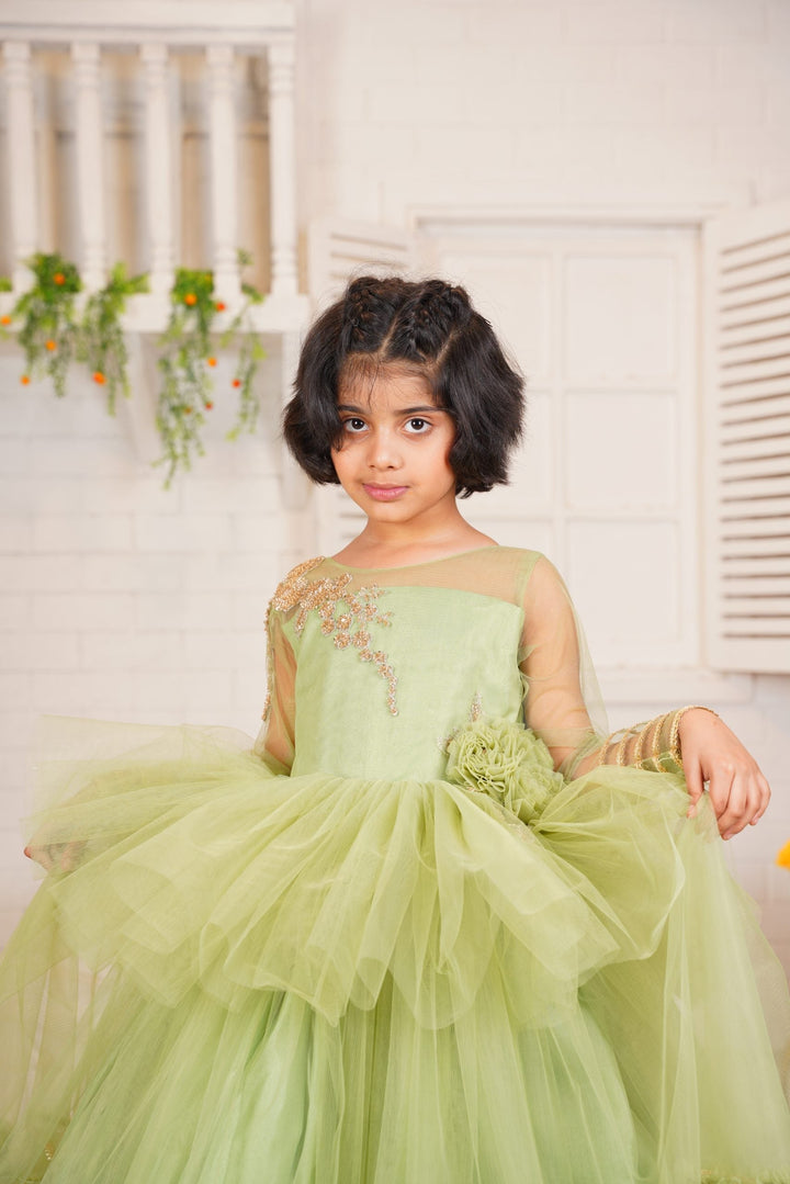 Fairy Queen - PISTA GREEN MILLI Western Wear For Girls