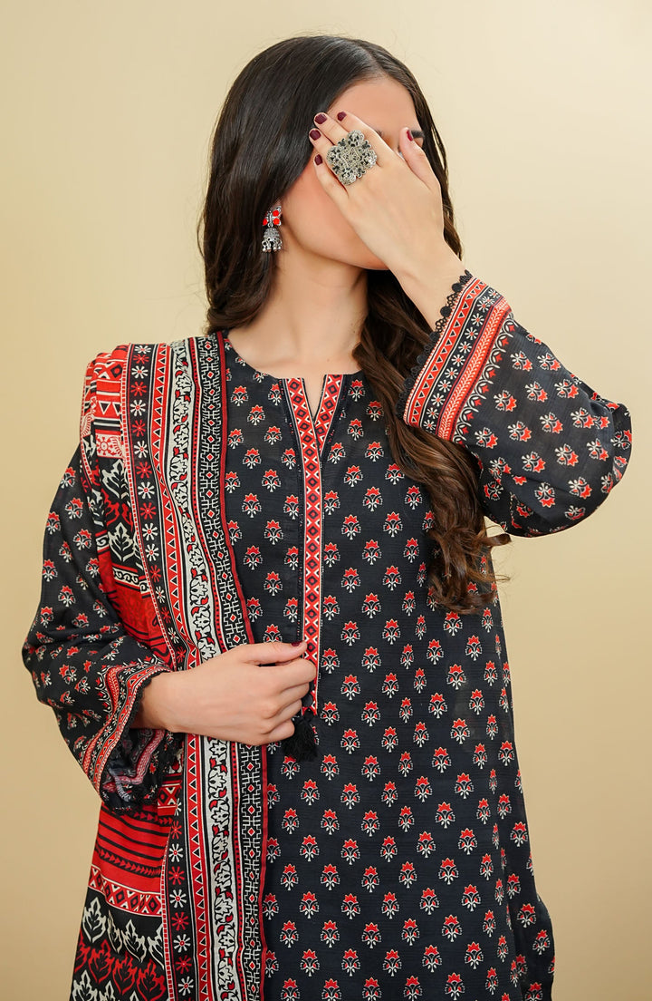 Amna Khadija - Satori Festive Printed 3 Peice Lawn Black D-01