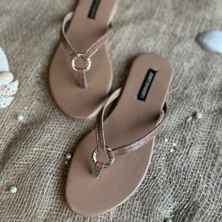 Introducing our stunning Vegan Leather Thong Slides, designed to elevate your summer style with a touch of exquisite brass ring detail. Crafted from high-quality vegan leather, these slides offer a cruelty-free alternative to traditional materials without compromising on aesthetics.