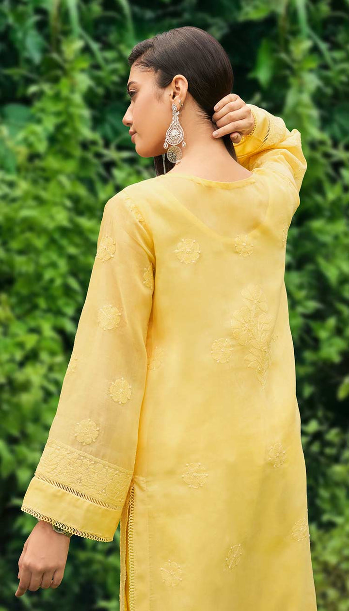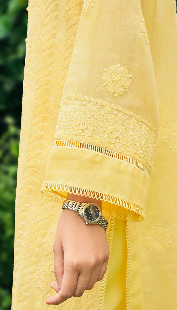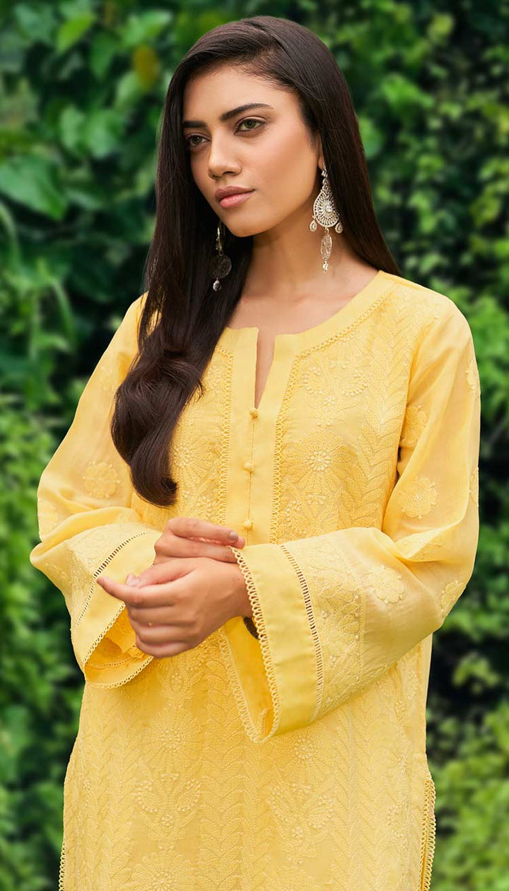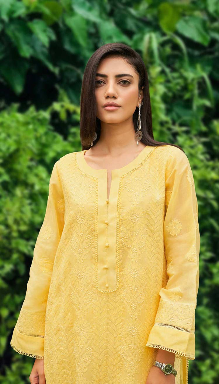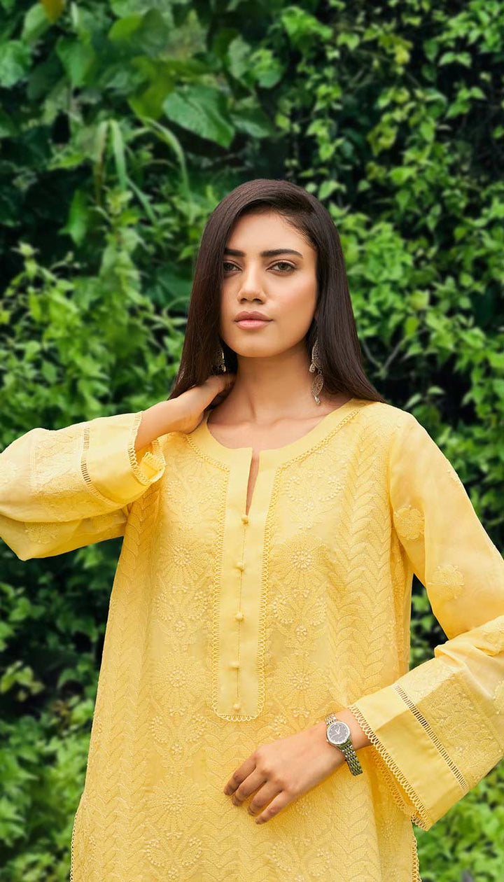 Our Indian chikankari piece “Sunny” elegantly adds a touch of timeless elegance to any ensemble, whether it's worn casually or for formal occasions. Enjoy the charm of history by indulging in our magnificent Indian chikankari lawn design. The fabric is airy and delicate, giving off an impression of ethereal appeal while guaranteeing comfort.