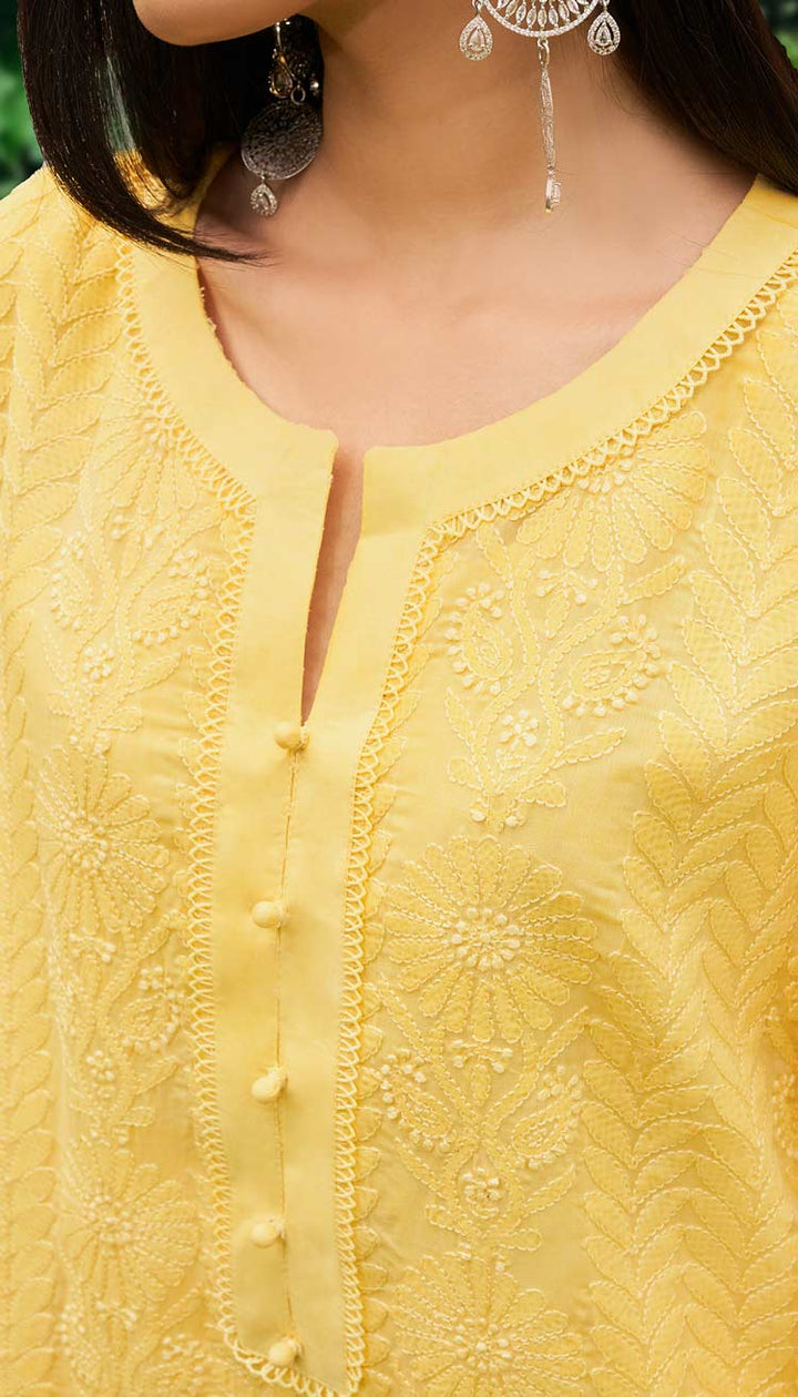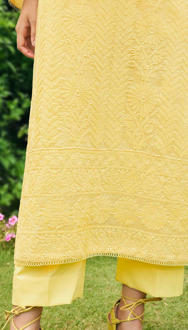 Disclaimer: Please note that the Indian chickankari design may differ from the image due to its unique handcrafted nature, where each design is one-of-a-kind and can't be mass-produced. Hence, we are showcasing the beauty of this old-age Indian craft. However, the outfit's stitching details and color will match the image.
