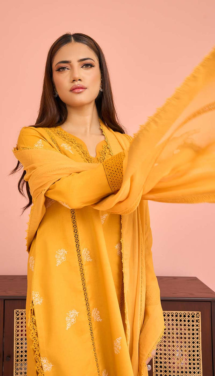 3 piece set includes a Shirt, Trousers, and Dupatta.