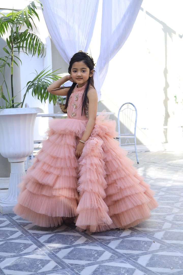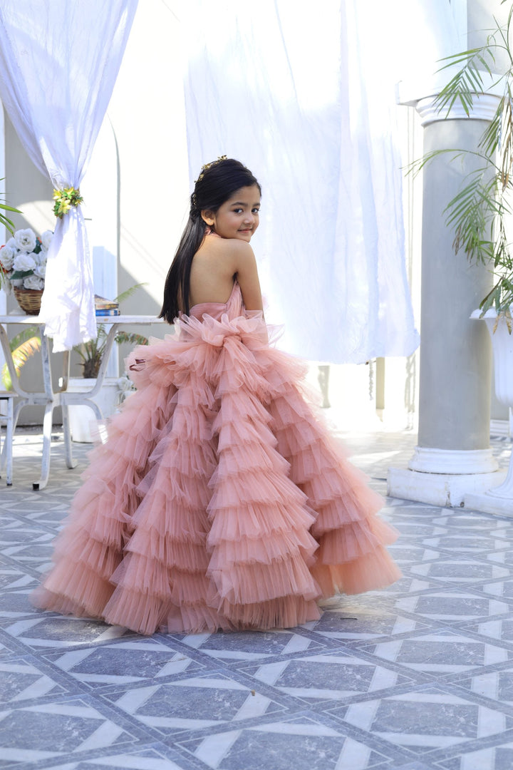 Unveil the TEA SAGE dress, an exquisite piece from our Luxury Collection. Cloaked in a tender blush pink hue, this dress is a symphony of layered tulle, creating a lush, dimensional look. Its timeless elegance is perfect for creating a moment of pure enchantment, making it an ideal choice for celebrations where grace and beauty take center stage.