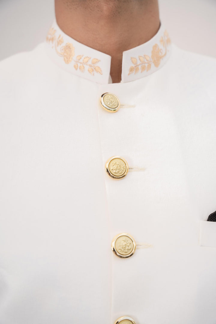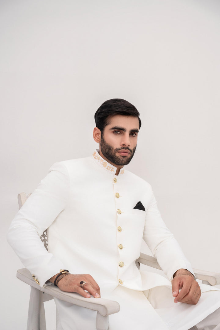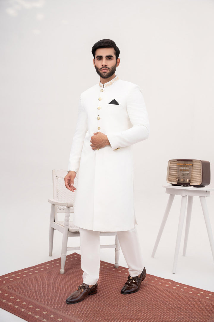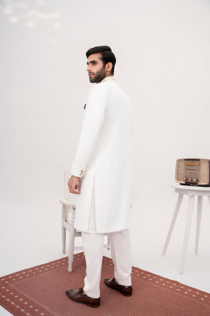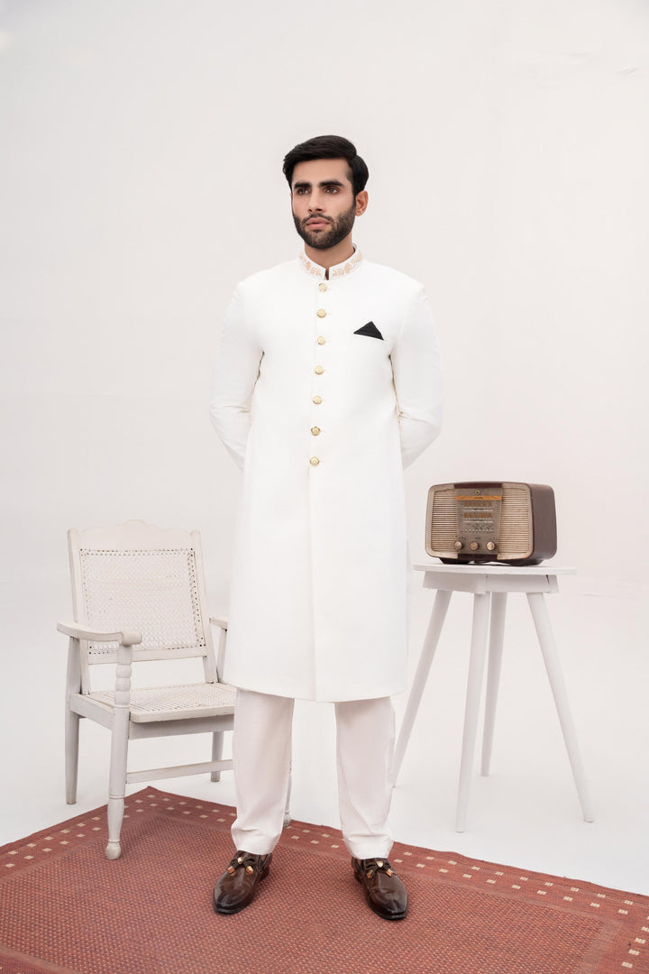 HK Fashion - White Embroidered Sherwani