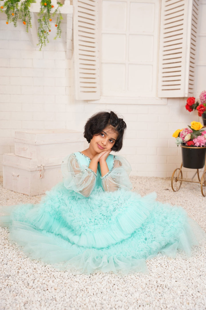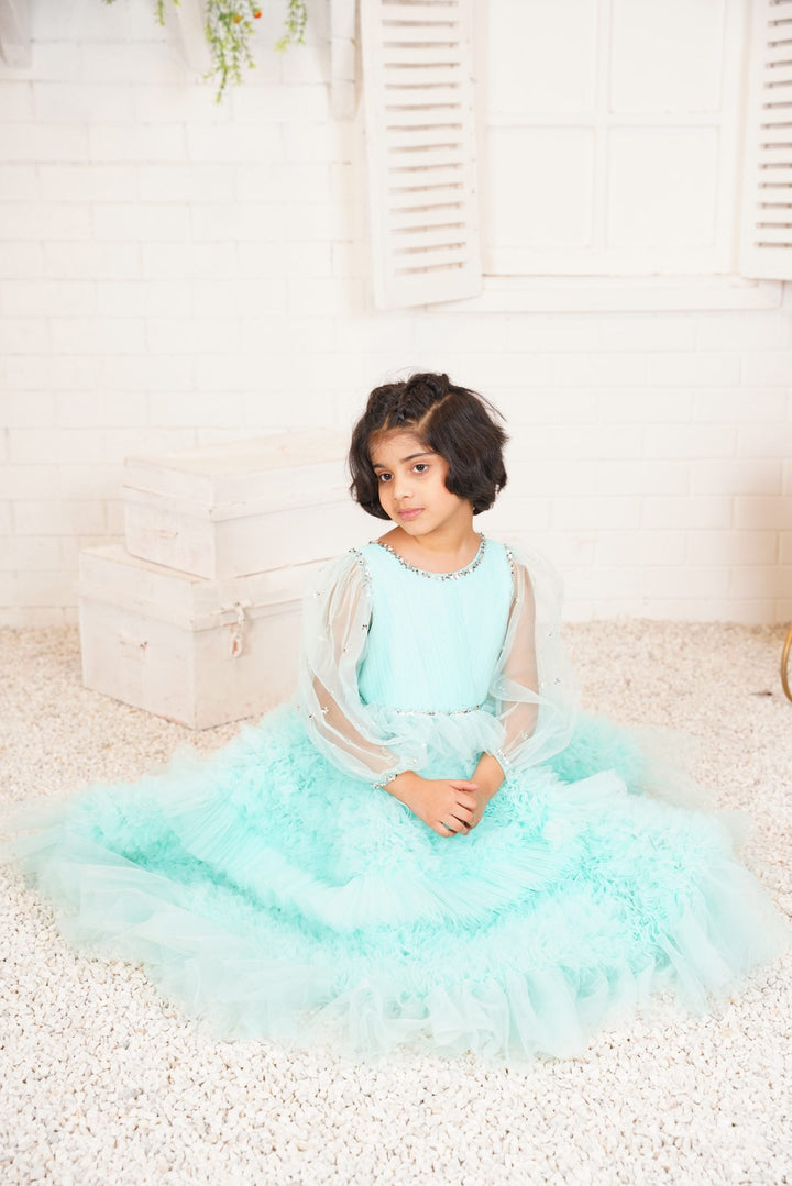 Introducing the ZINNIA SKY dress from our Luxury Collection, where the serenity of the sky meets the art of elegance. This captivating sky blue gown is crafted with layers of soft tulle and delicate breeze net, creating a floating silhouette that whispers grace with every movement. Ideal for occasions where poise and serenity are celebrated, it's a dress that will leave a lasting impression of pure, airy beauty.